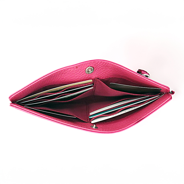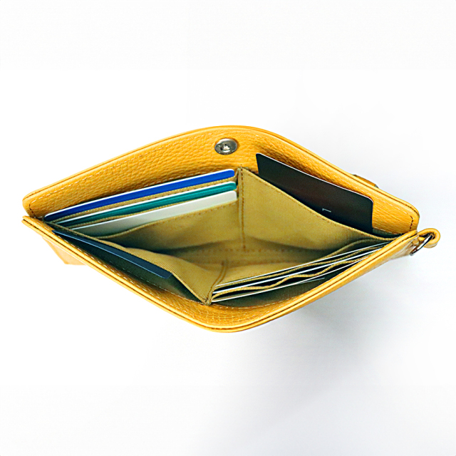 内側にはカードポケットが前後についており6枚のカードが収納できます。さらにフリーポケットも2つついております。